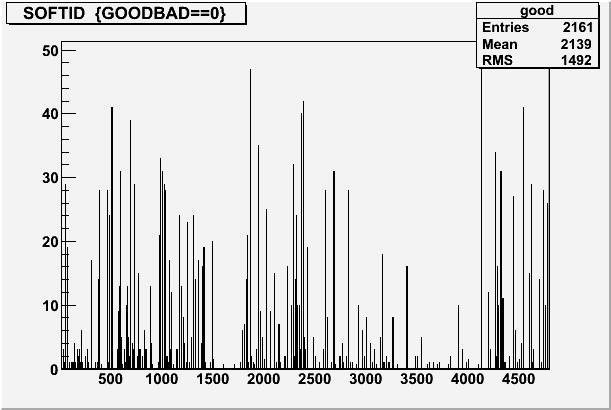 List of soft Id that went bad,sorted by frequencyThe preshower has problems as well, as we are losing whole crates, a first thing to look at would be to see if we can get them back online (this kills about 20% odd)